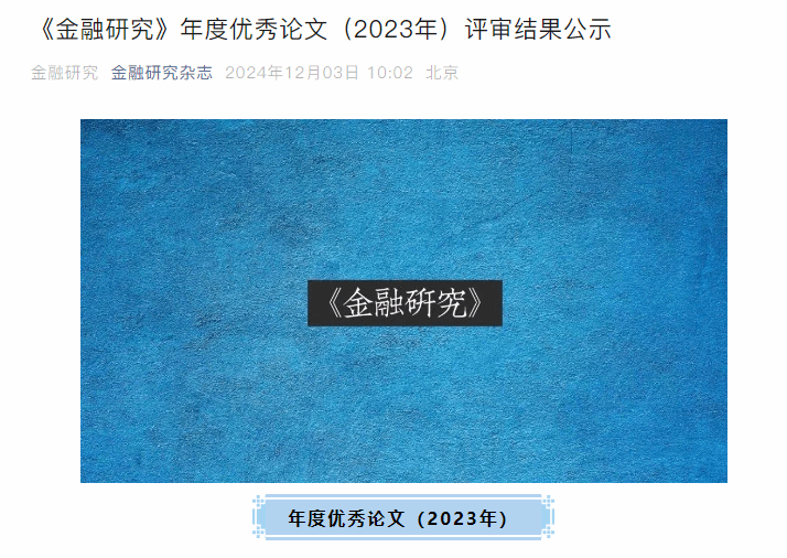 《金融研究》年度优秀论文由编辑部邀请12位来自高校、人民银行等机构的知名专家学者,对参评论文进行通讯评审并形成初选名单。在此基础上,编辑部于2024年11月22日召开现场评审会,最终确定年度优秀论文7篇。