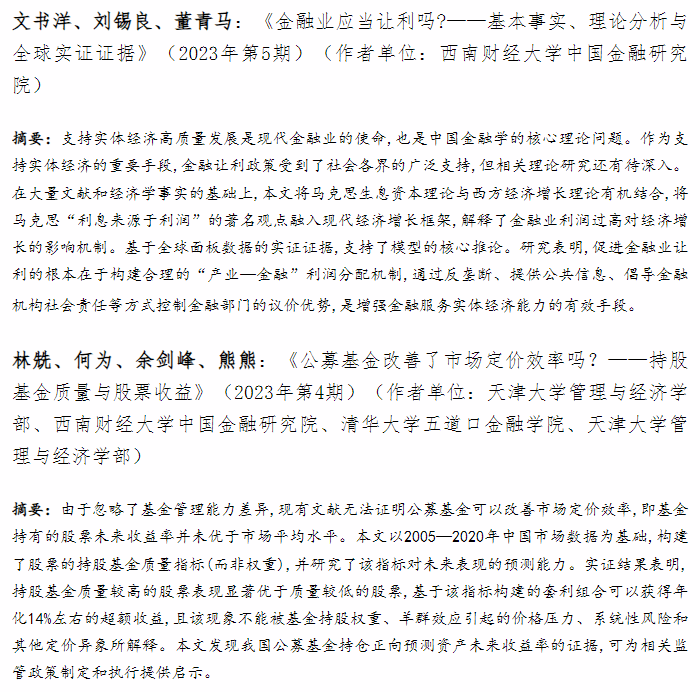 《金融业应当让利吗?——基本事实、理论分析与全球实证证据》一文将马克思主义金融理论与现代经济增长框架有机结合,创新性地提出了一种融合性理论框架,回答了金融服务实体经济的现实问题。