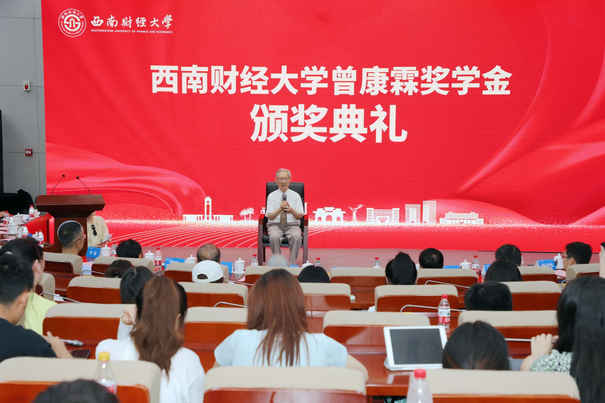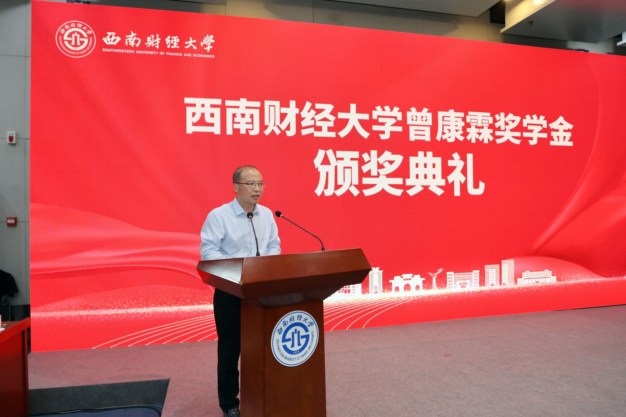 李永强在致辞中代表公司向曾康霖教授及家人表示诚挚感谢和崇高敬意。他表示,曾康霖教授数十载如一日,始终秉持对教育事业的忠诚与奉献,对金融学科的执着与追求,潜心育才、深耕学术,为我国金融团队建设与发展倾注了巨大心血,培养了一大批优秀金融人才,为国家金融事业和金融教育事业发展作出了卓著贡献。他勉励全校师生仰先生之大德,心怀大我,赤诚报国;慕先生之大学,开放包容,格致穷理;循先生之大道,知行合一,笃行不怠。他希望同学们心怀“国之大者”,弘扬西财精神,从深沉的文化自信和时代责任中汲取求知、明理、增智的不竭动力,争做有理想、敢担当、能吃苦、肯奋斗的新时代好青年,奋力书写为中国式现代化挺膺担当的青春篇章。
