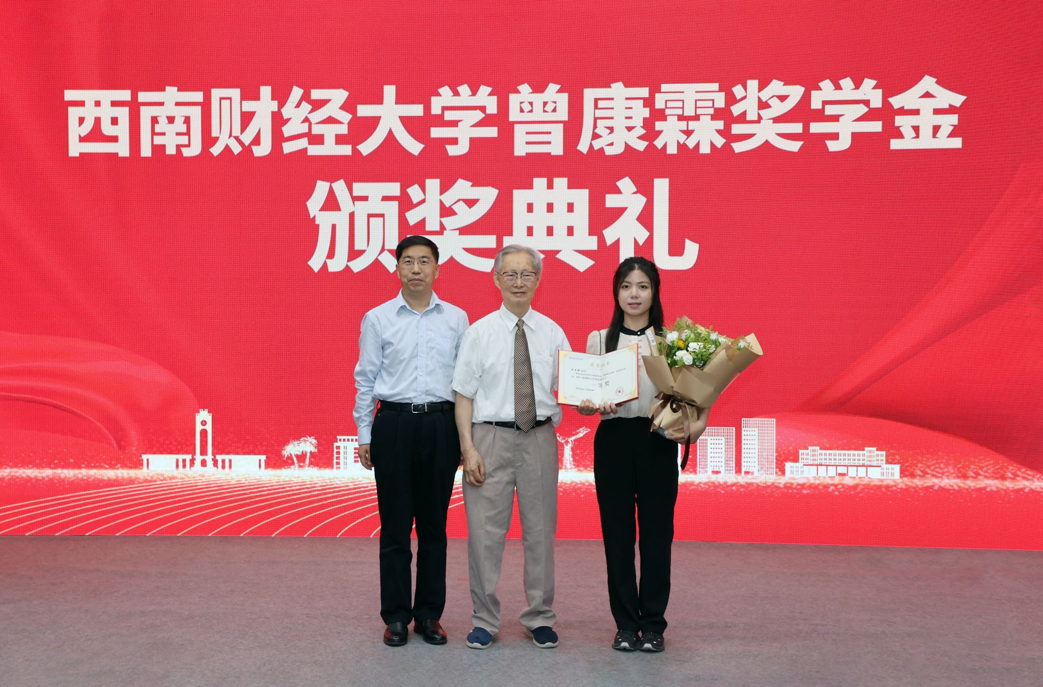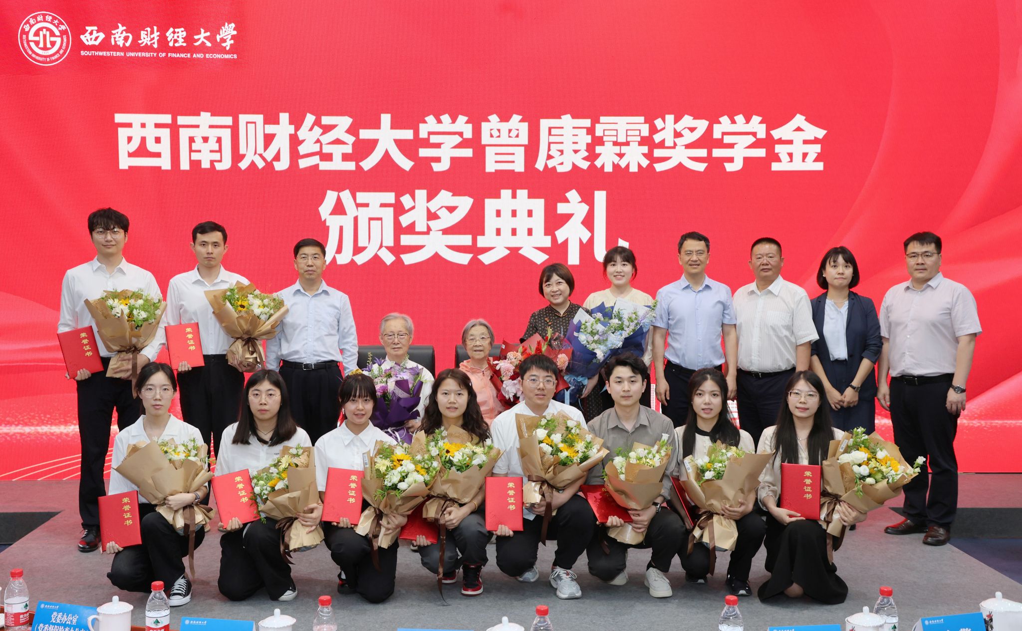 获奖同学向曾康霖教授及家人献花,表达诚挚的感谢和深深的敬意。