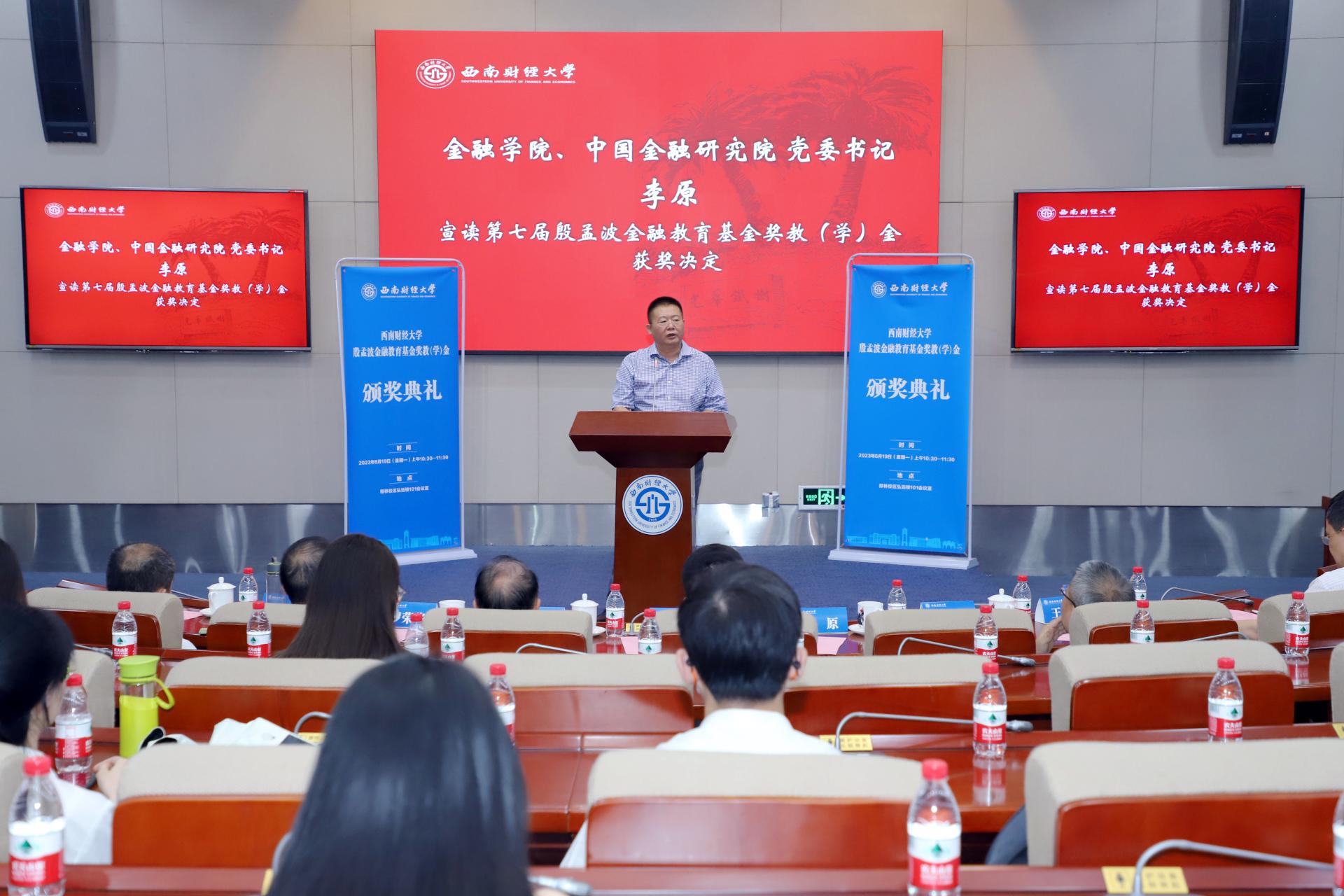 李原宣读了第七届殷孟波金融教育基金奖教(学)金获奖决定。参会领导为获奖师生颁奖。