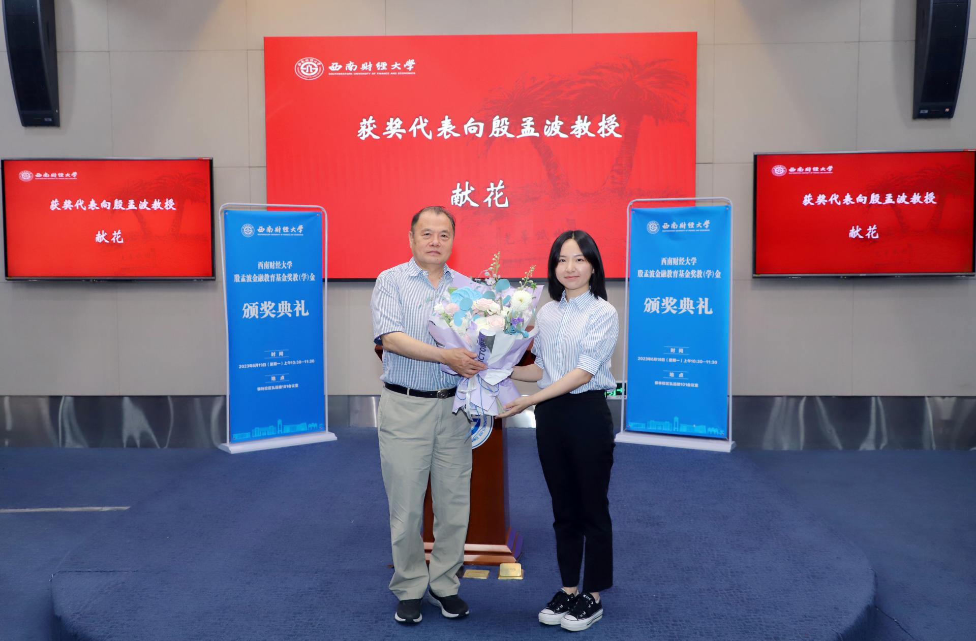 典礼上,获奖教师代表陈苡文对公司、公司的栽培、殷教授的鼓励以及员工、家人的支持表达了诚挚感谢;获奖员工代表陈俊桥回顾了在西财三年的成长经历,对培养自己的恩师和陪伴自己的家人、朋友表达了感谢,也希望殷孟波奖学金的精神力量能继续传承。