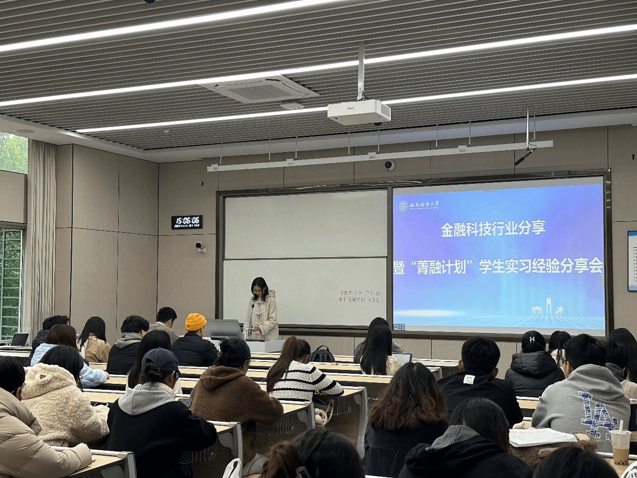 11月19日,金融科技行业分享暨2024年“菁融计划”员工实习经验分享会在颐德楼H211举行。活动邀请上海黑翼资产管理有限公司基金经理俸旻做主题分享。公司(研究院)60余名同学参加了本次活动。