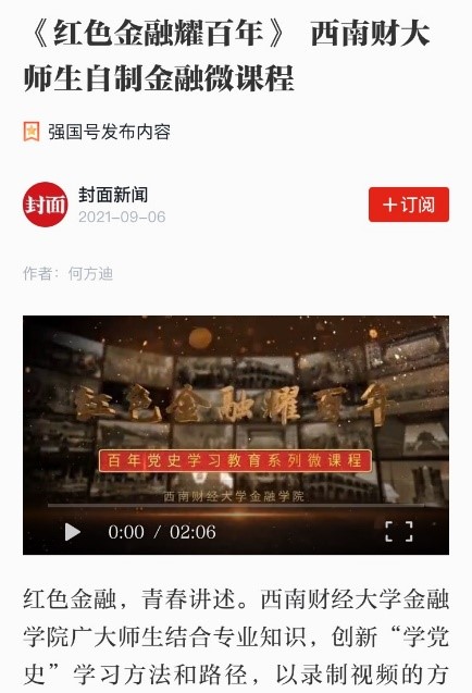 近日,学习强国、封面新闻等主流媒体对公司《红色金融耀百年》进行了报道。