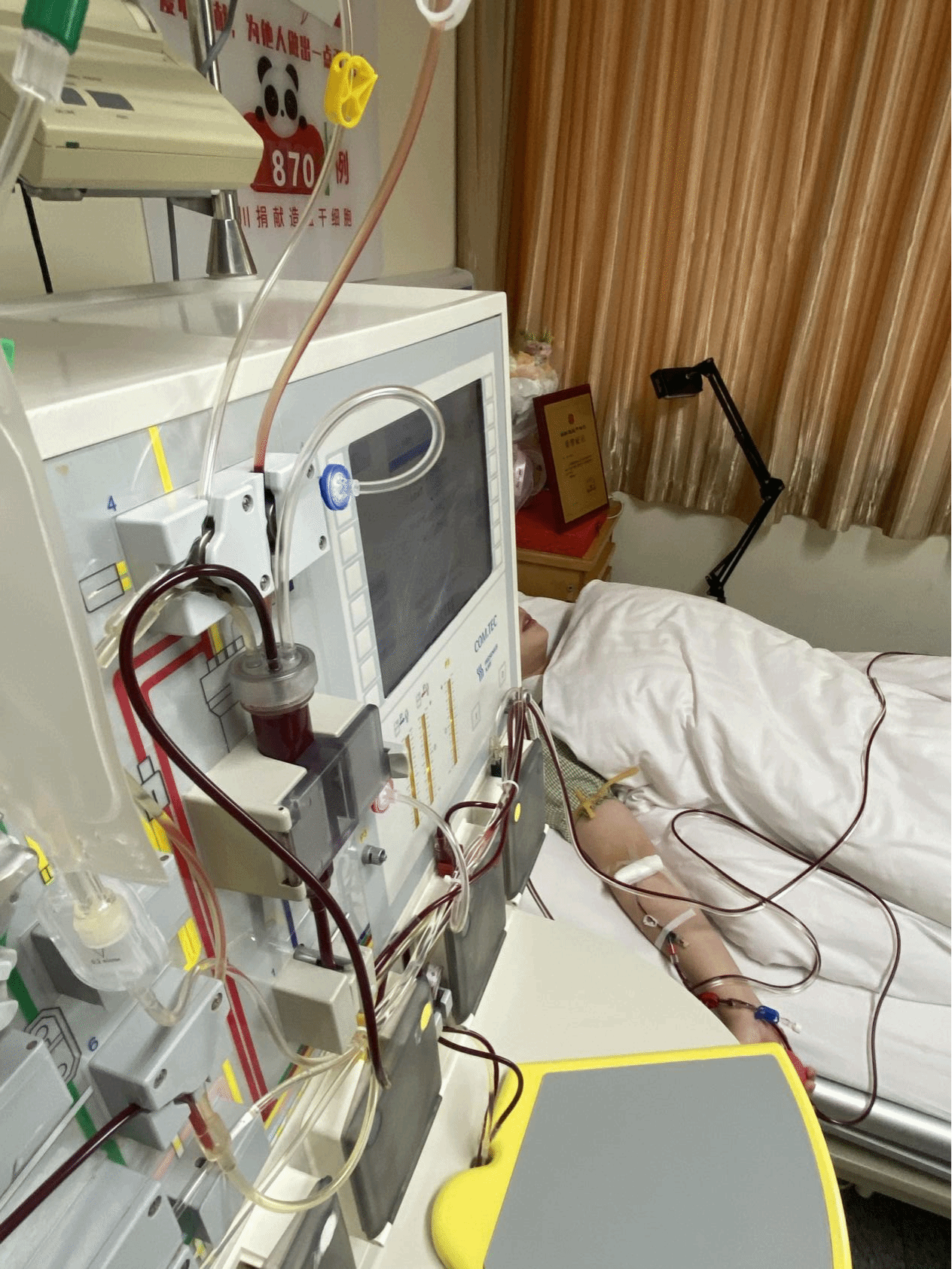 5月15日,陈希开始注射动员剂,将骨髓中的造血干细胞“唤醒”至外周血。针对骨骼酸痛、头晕嗜睡等反应,医生给予了专业的缓解方法。四天后,历经25次循环、采集179毫升造血干细胞,这场生命接力终于画上圆满句点。