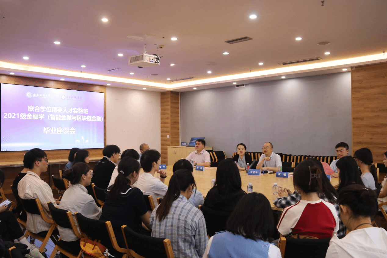 6月24日,西财-成电联合学士学位项目2021级金融学(智能金融与区块链金融)毕业生座谈会在格致楼411会议室召开。教务处副处长廖春华,bevictor伟德官网、中国金融研究院经理罗荣华,bevictor伟德官网与中国金融研究公司党委副书记谭敏、张帆、陈卓,bevictor伟德官网副经理蒲明,金融科技系副主任徐秋华,金融学(智能金融与区块链金融)各年级辅导员及员工代表等50余人参加座谈。蒲明主持会议。